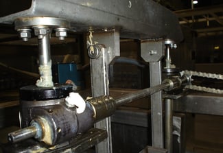 Da die Wagenheber nicht mit dem Getränk in Berührung kamen, war kein Edelstahl erforderlich, aber aufgrund der Nähe zum Produktionsprodukt war Fett in Lebensmittelqualität erforderlich. Durch die Verknüpfung eines Satzes von 4-Tonnen-Spindelhubgetrieben M2555 wurde der Mechanismus geschaffen, der es dem Bediener ermöglichte, sich an unterschiedliche Flaschenhöhen anzupassen.