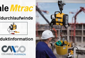 Tragfähigkeit: 66 - 500 kg. Das Modell Yale Mtrac® verbindet modernes Industriedesign mit technischer Innovation. Bei der Entwicklung wurde der Fokus auf die einfache und sichere Handhabung für mobile Einsatzzwecke gelegt. Bei Seildurchlaufwinden wird das Seil angetrieben, ohne es zu speichern, so dass nahezu uneingeschränkte Hubhöhen oder Zuglängen möglich sind.