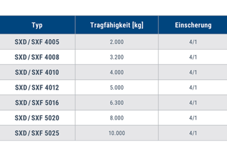 • Traglastvarianten von 2.000 – 10.000 kg
