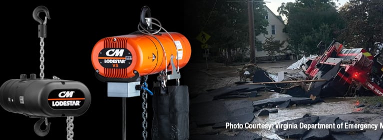 From now until the end of December, Columbus McKinnon will be donating a portion of our powered chain and air chain hoist sales to charitable organizations in impacted areas. The specific models eligible for this program are manufactured locally at our Damascus facility, so you can be sure you’re getting products made in the region by people in the region.